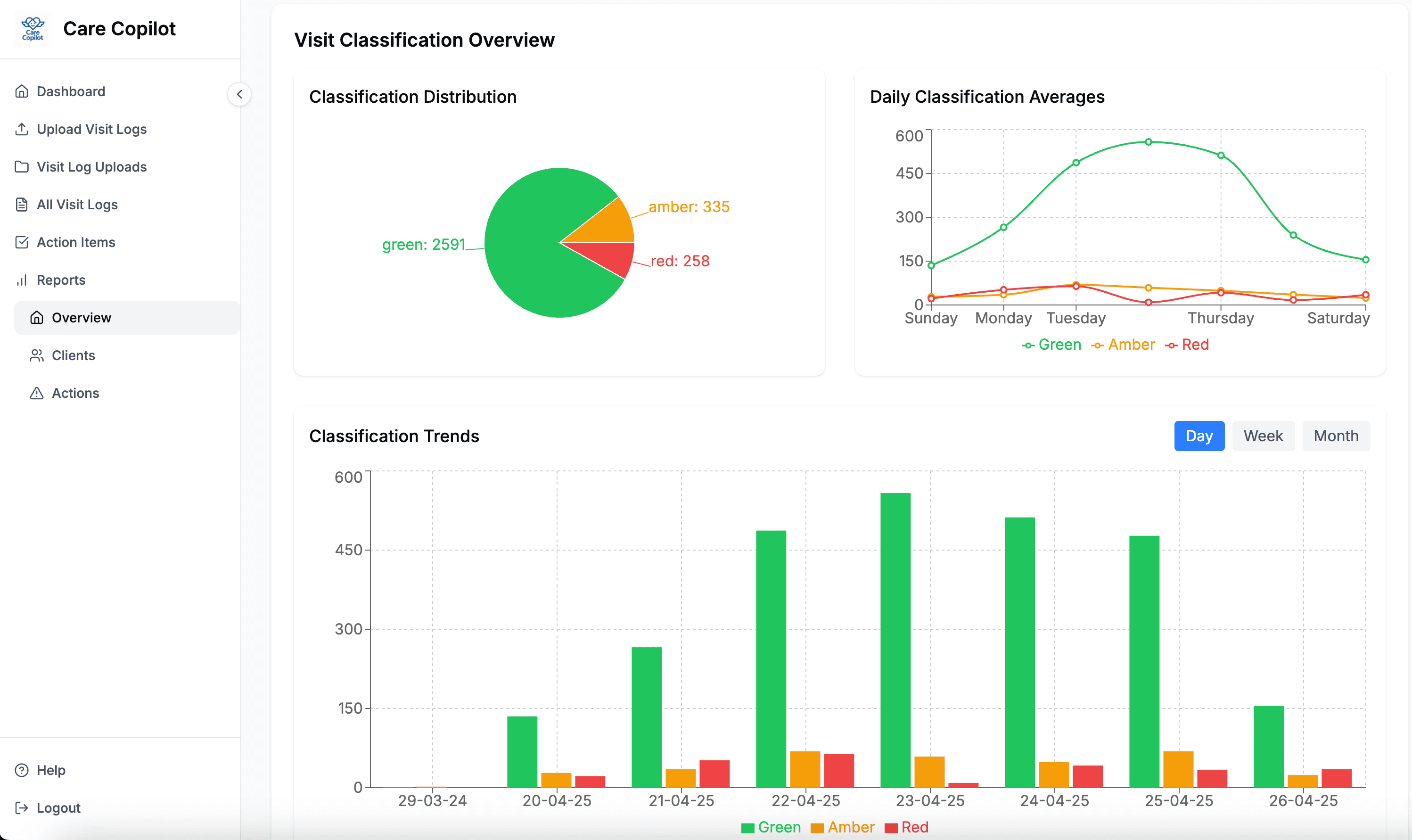 Upload your Carers visit logs to Care Copilot and see them classified and summarised within just a few minutes.